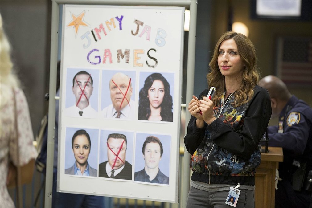 The Nine-Nine is assigned to motorcade duties, and as a result, have a couple hours of free, unsupervised time. Time for the Jimmy Jab Games! Like the Office Olympics before them, the Jimmy Jab Games are a chance for co-workers to blow off steam while playing funny games in the office. Highlights include: eating month-old Chinese food and “print off a picture from a laptop from 1982.” Also, like the Office Olympics, the Jimmy Jabs give Peralta and Santiago ample opportunity to flirt each other’s pants off, thus continuing the will-they-won’t-they situation (that I when on and on about at length last post.)