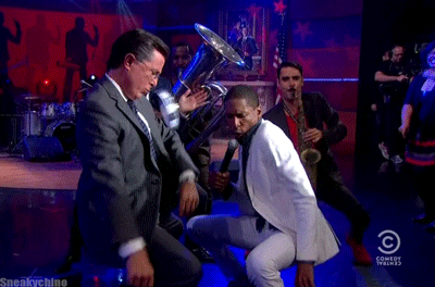 Colbert’s first Friday night episode was as much a celebration as his first episode. “We’ve made it a week!” he declared during his opening monologue. Colbert has altered the standard late night format as well. Firstly, he announces his own guests (via voiceover) during the opening montage—it’s quite funny when the camera cuts back to Colbert in the studio quickly hiding the microphone under his desk then smiling coyly to the camera. He has also cut down the opening monologue and does the second half from his desk with a corresponding graphics screen behind him—a format he is quite comfortable with as it was his mainstay on the Colbert Report. I would be remiss not to mention what is one of greatest late night bands in history, Jon Batiste and Staying Human. (Dare I say better than The Roots?) The energy and showmanship that Batiste and his band bring to the show is amazing. Often the camera catches Colbert in the background dancing to the band—occasionally he even joins them during performance.